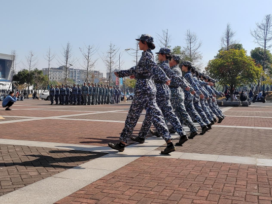 10日下午,训练正式开始。“双脚分开六十度”、“稍息”、“立正”、“跨立”、“报数”、“向后转”、“整理军姿”……迎着阳光,在教官的一声声指令中,一次次悉心指导下,最基本的既定训练项目在有条不紊地向前推进。