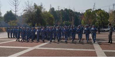 旭日初升,其道大光。同学们早就在集合时间前到达指定地点自觉组队,在明媚的晨曦中整装待发,步伐坚定行进到训练场。