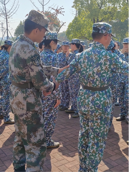 孔圣曾云:“温故而知新,可以为师矣。”足见复习之重要性,因而第六天的重要训练内容仍是复习前几日所学,同学们在教官们的操练下,一步步完善自己的动作,教官也不厌其烦地进行指导和纠正,这样其乐融融的场景当真当得起一句“亦师亦友同训练,教管学生共苦甜。”