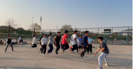 比赛过程中,队长卢宇超合理分工,安排上场顺序,细心指导每一位队员,鼓励参赛选手,接力跳大绳中,同学们配合默契,坚持不懈,争分夺秒,虽然中间不乏有“小插曲”,但同学们仍能接替而上,踔厉奋发,毫不灰心,不到最后一刻毫不放弃。中场休息,姜湖同学参与报团游戏,在“桃花朵朵开”的伴奏下,他身手敏捷,反应迅速,成功晋级。休整完毕,在齐跳大绳环节中,同学们互相支持,给予队友鼓励,在“一二、一二……”的口令中,同学们的齐跳在稳步进行着。